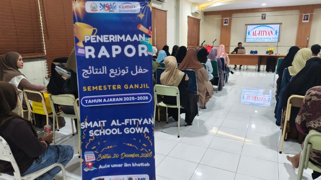 Gowa, 20 Desember 2025 – SDIT Al-Fityan School Gowa, sebagai sekolah unggulan islami, menyelenggarakan kegiatan Penerimaan Rapor Semester Ganjil Tahun Ajaran 2025/2026. Kegiatan ini dilaksanakan pada Sabtu, 20 Desember 2025, bertempat di lingkungan sekolah. Kegiatan ini diikuti oleh sekitar ±700 murid dari kelas I hingga VI bersama orang tua atau wali murid. Acara berlangsung tertib, khidmat, dan penuh makna dengan mengusung tema “Rapor: Cermin Usaha, Doa, dan Bimbingan.”